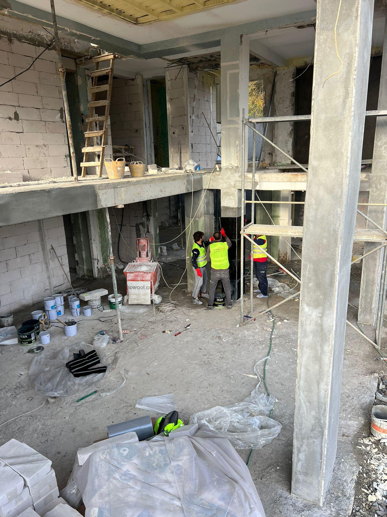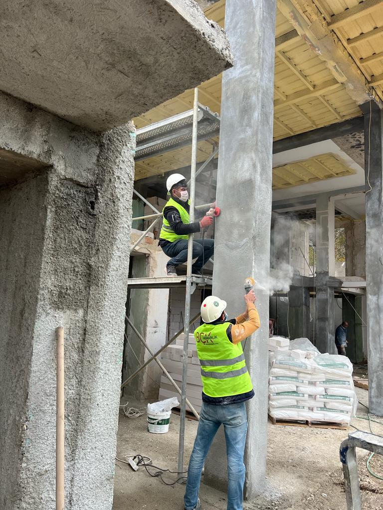 Yapısal güçlendirme sürecinde öncelikle betonarme sistem güçlendirmeleri uygulanmıştır. Taşıyıcı kolon, kiriş ve kritik yapı elemanlarında yapılan betonarme takviye işlemleri ile yapının yük taşıma kapasitesi artırılmış, mevcut sistem daha güvenli hale getirilmiştir. Bu uygulama, yapının uzun ömürlü kullanımını destekleyen temel güçlendirme adımlarından biridir.